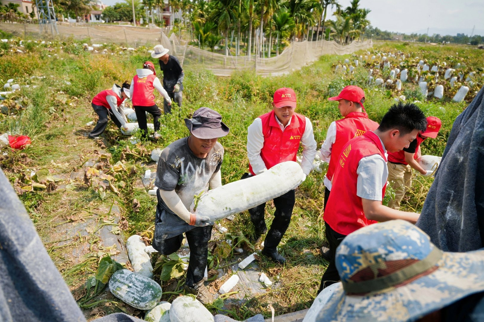 近日,陵水县文罗镇新华村两名退役军人种植的80亩冬瓜喜获丰收,但受市场影响遭遇滞销,60万斤冬瓜亟待销售。县退役军人就业创业协会第一时间上报情况,县退役军人事务局迅速响应、实地调研,紧急召集各界力量开展帮扶。4月10日上午,退役军人滞销冬瓜爱心认购义卖活动在文罗镇新华村正式启动,多方合力以买代帮,切实为退役军人种植户纾困解难,减少损失。
