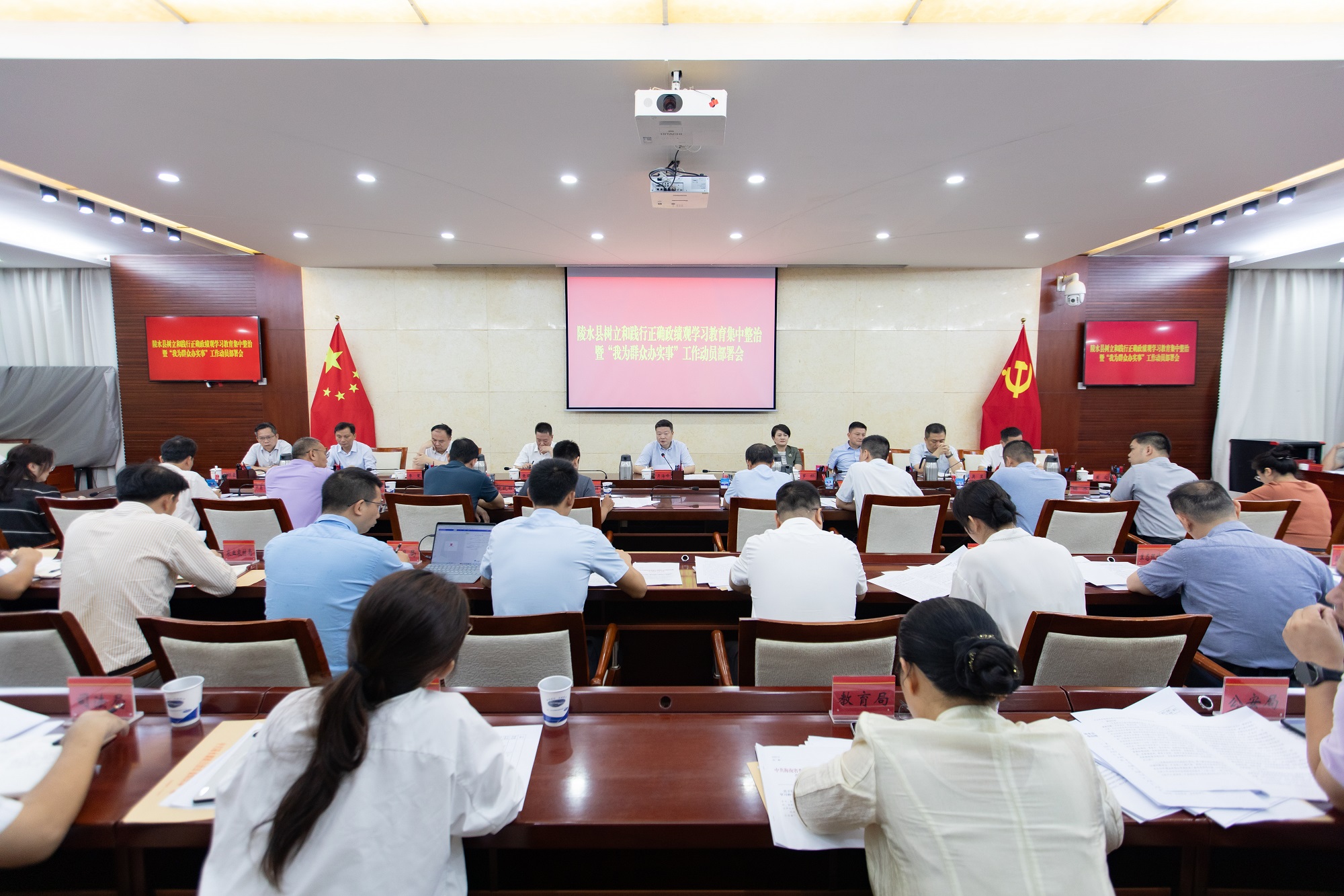 4月15日,陵水召开树立和践行正确政绩观学习教育集中整治暨“我为群众办实事”工作动员部署会。县委书记吴海峰主持会议并讲话,县委副书记、县政府县长罗桦,县人大常委会主任张隆挺,县政协主席文传宝,县委副书记、政法委书记李夏,县领导吴昊、周刚、马科科、王祺霖、黄文出席会议。
