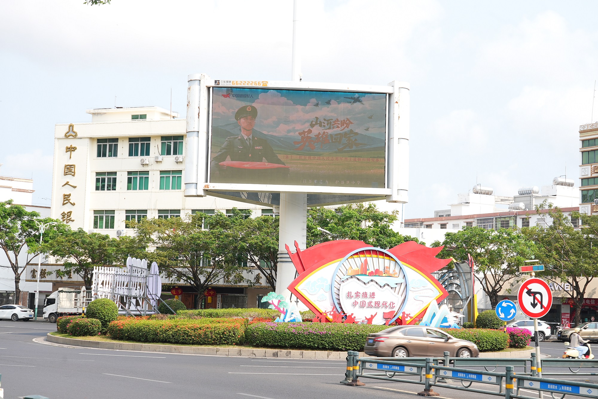 4月21日,陵水退役军人事务局联合县委宣传部,在县城主要交通路口、文化广场等地的LED地标大屏同步点亮“山河共盼 英雄回家”主题宣传画面。