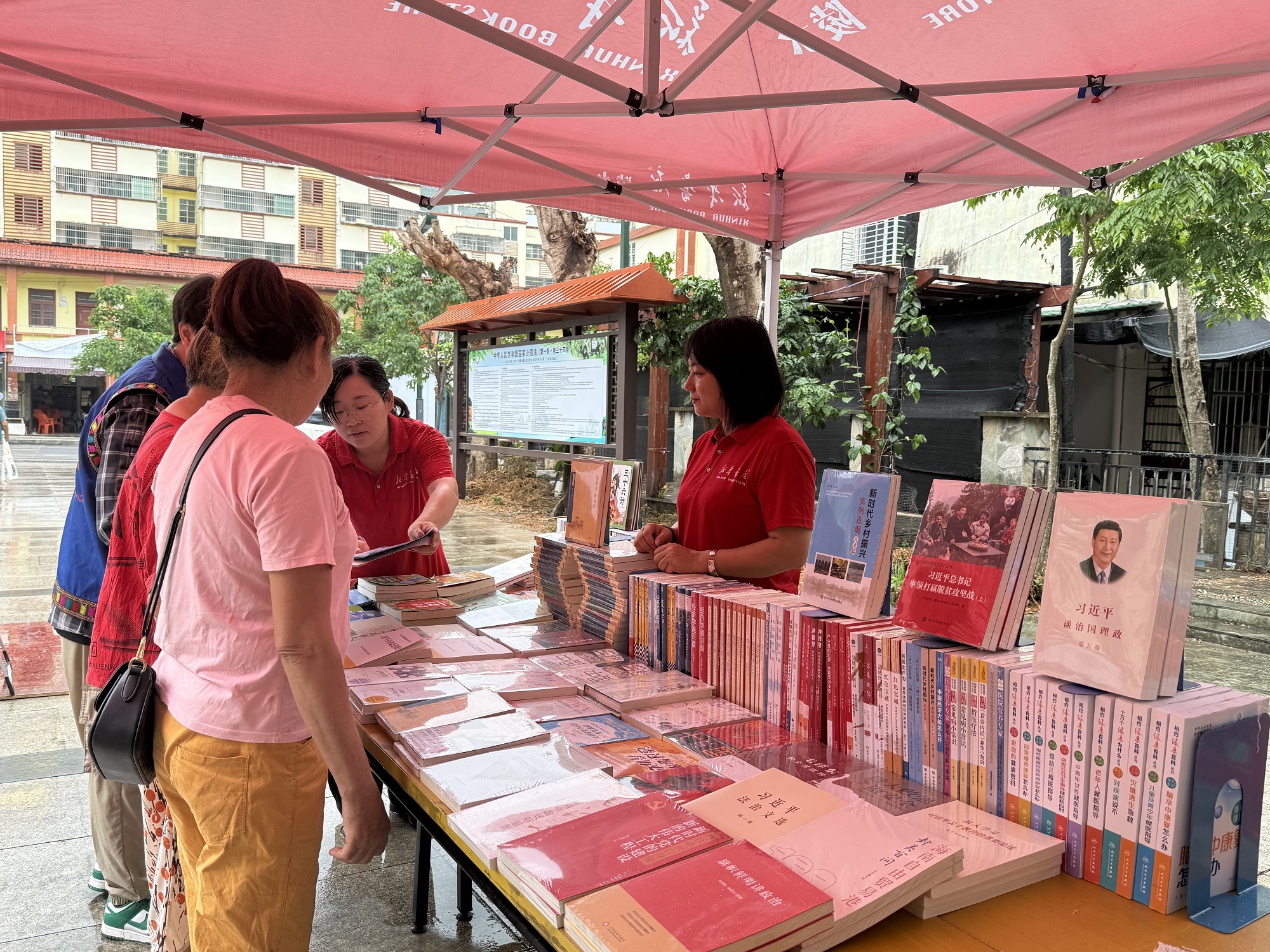 4月24日,由县委宣传部、本号镇政府主办,陵水县新华书店承办的“书香进社区·阅读润山乡”流动图书惠民阅读活动,在吊罗山社区文化广场举行。