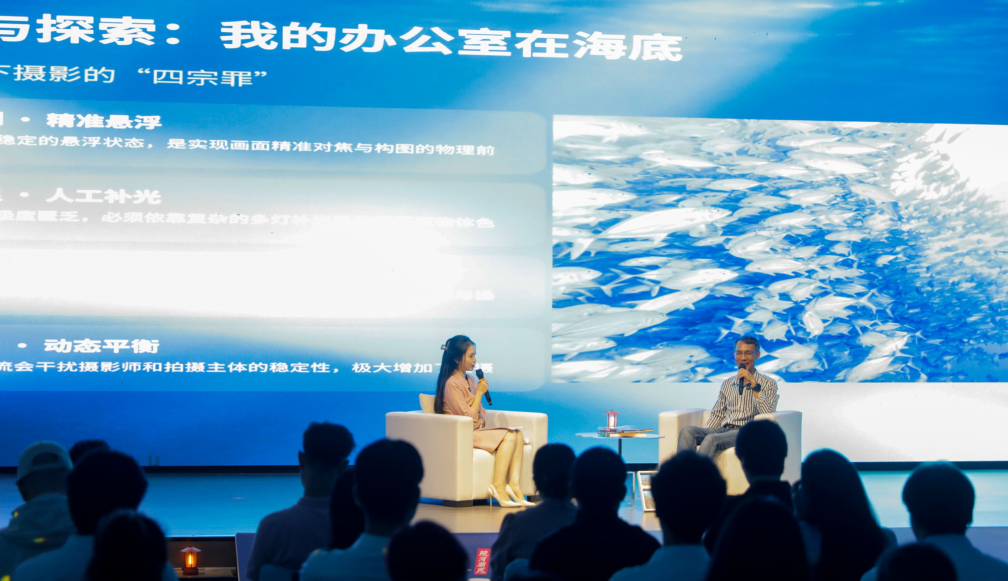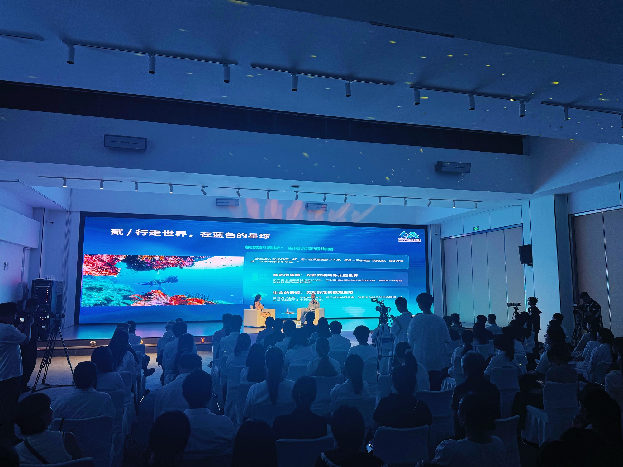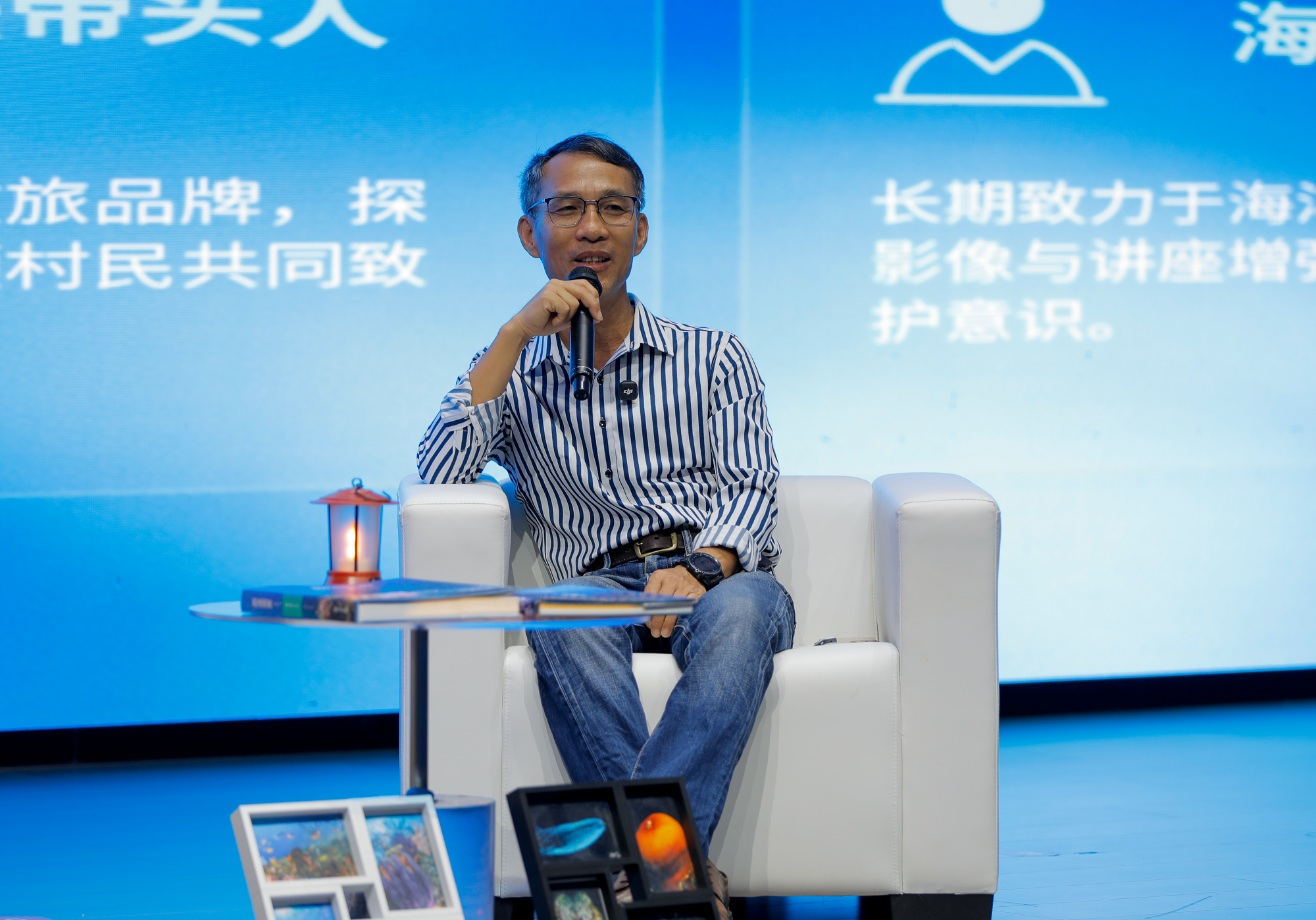 嘉宾潮和介绍:“创办‘蓝岸城市夜谈’栏目,就是希望为青年群体搭建沟通平台,助力年轻人接轨外界、放眼远方,同时让更多人走近陵水、认识陵水,开阔眼界、放眼世界。本次活动以小镇青年联通世界为主题,我分享了自己海底探秘、水下摄影的亲身经历,也讲述了怎样借助本职工作整合外部资源,跳出固有圈层,去邂逅更精彩的大千世界。”
