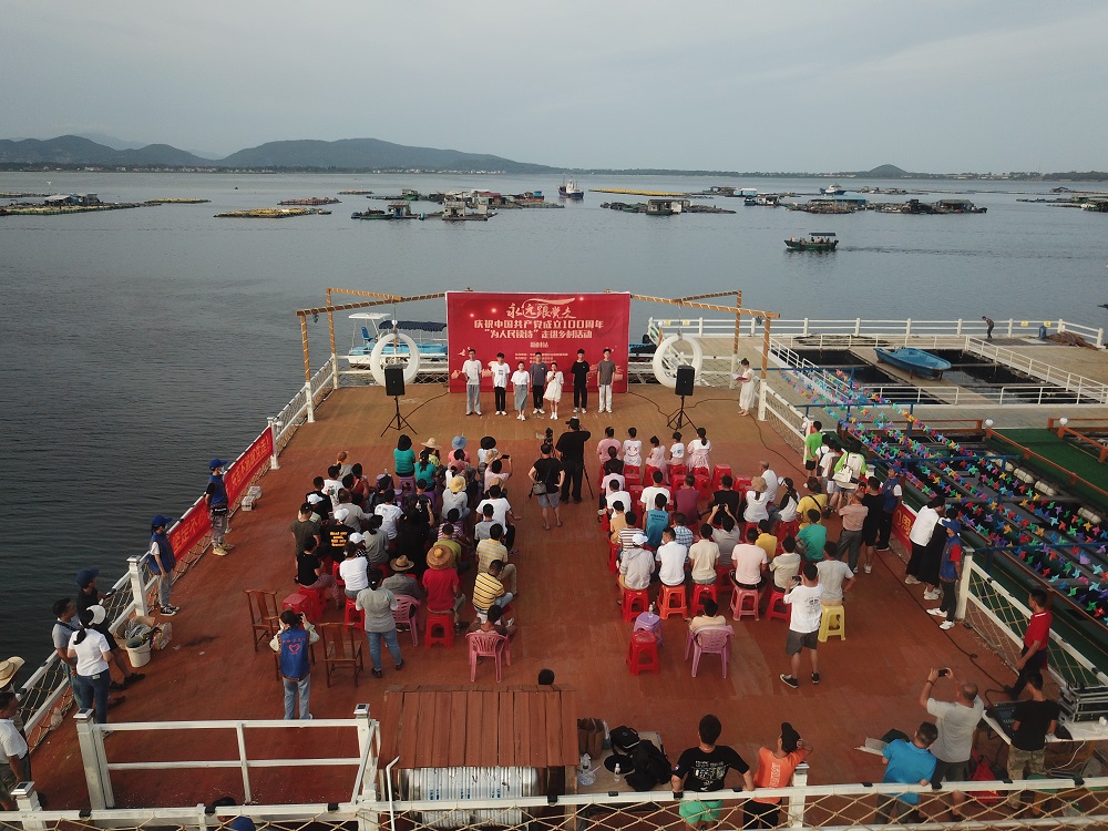 中共新村镇委党委委员蔡颖表示,此次活动在县委宣传部大力支持下,把诗歌朗诵的场地放到了新村镇的渔排上,为群众增添新的文化氛围,也为下一步转产转业提供一个广泛平台。“在建党一百周年的时期,让广大的渔民更能体会到党对人民的关切及热爱,让大家跟党走、听党话,一起向幸福出发。”